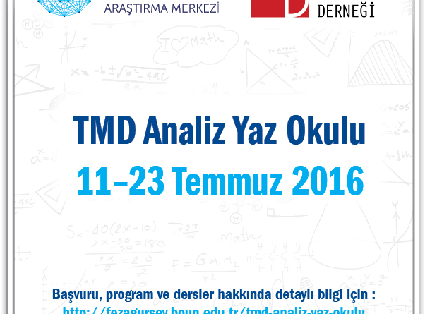 Türk Matematik Derneği (TMD) on yıllardır Ankara, Trabzon, Çanakkale, Amasra ve Şirince’de düzenlenen yaz okullarına bir mekan daha ekleyerek Feza Gürsey Enstitüsü’nde ANALİZ dersi verilecek bir YAZOKULU düzenlemektedir. Hedef gelecek yıllarda bu mekanda verilen ders sayısını artırmayı hedeflenmektedir.