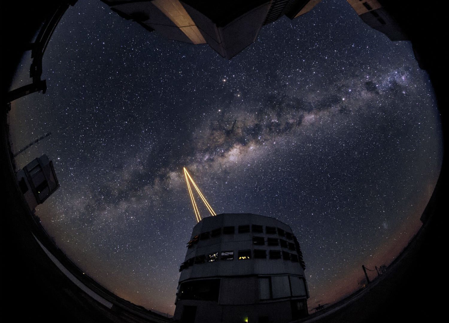 Dört lazer kılavuz yıldız tesisi 22-watt lazer demetini kullanarak atmosferde yer alan sodyum atomlarının parlamasına neden olur ve böylece gerçek bir yıldız gibi görünmelerini sağlar.