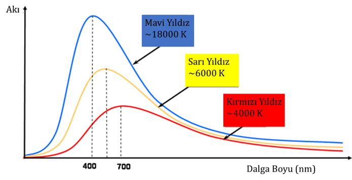 - Kara cismin sıcaklığı arttıkça dalga boyu azalır (Wien yasası).