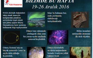 1)NASA, ekolojik değişimleri takip etmek amacıyla kutuplardaki plankton seviyelerini tespit etmek için güneş ışığına ihtiyaç duymaksızın lazer ışınlarını kullanarak bilgi toplayacaklar. Kaynak:hürriyet.com 2)Mars’ta bulunan bor, suda çözünmüş olabileceği tartışılmaktadır. Kaynak:bilimfili.com 3)Dünya’nın yakınında yörüngede olan yeni bir yarım-uydu sınıfında asteroid keşfedildi. Kaynak:space.com 4)Bilim insanları antimadde atomunu ilk defa ölçtüler. Kaynak:cern.com 5)Güneş Sistemi’nin...